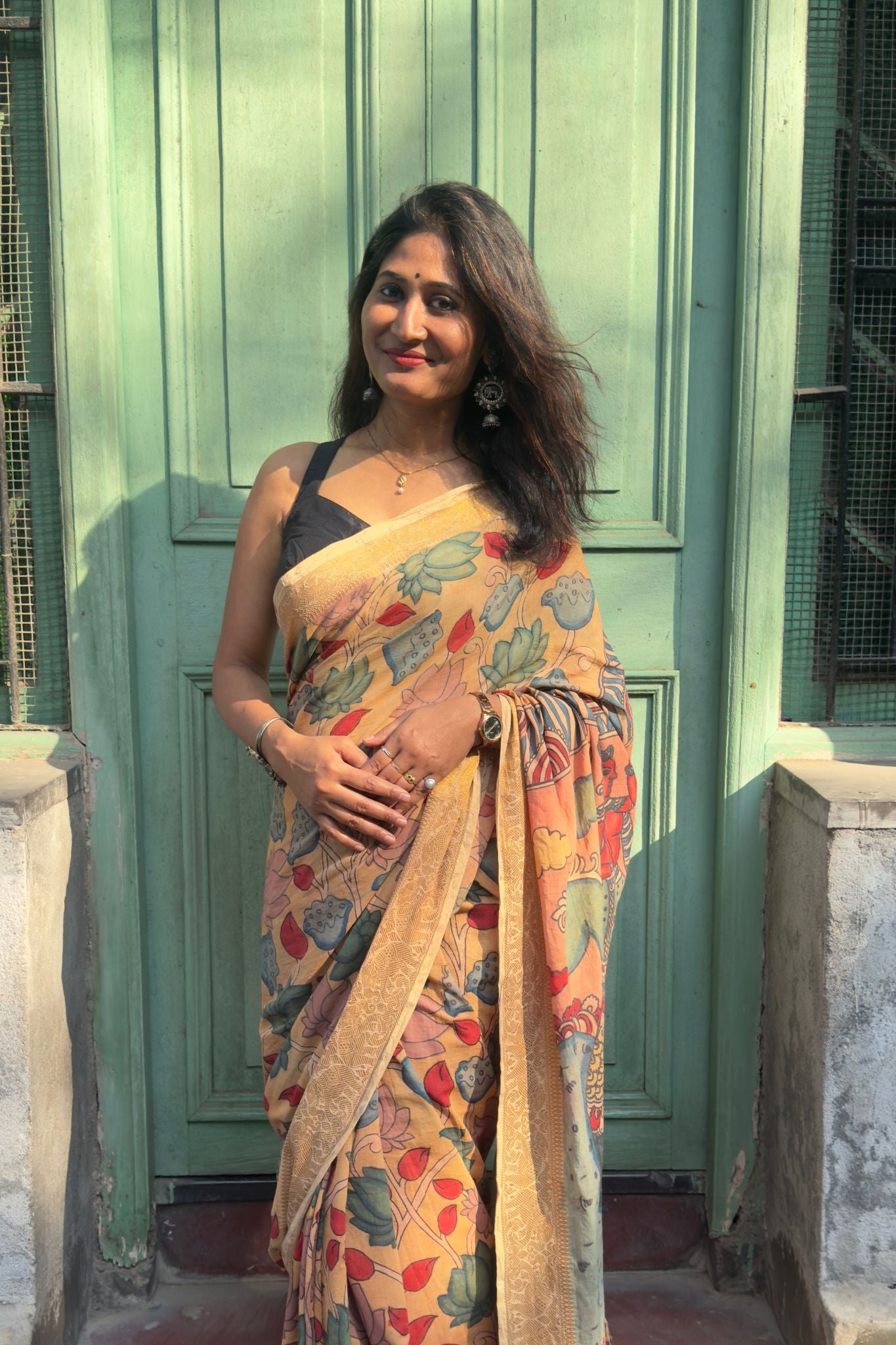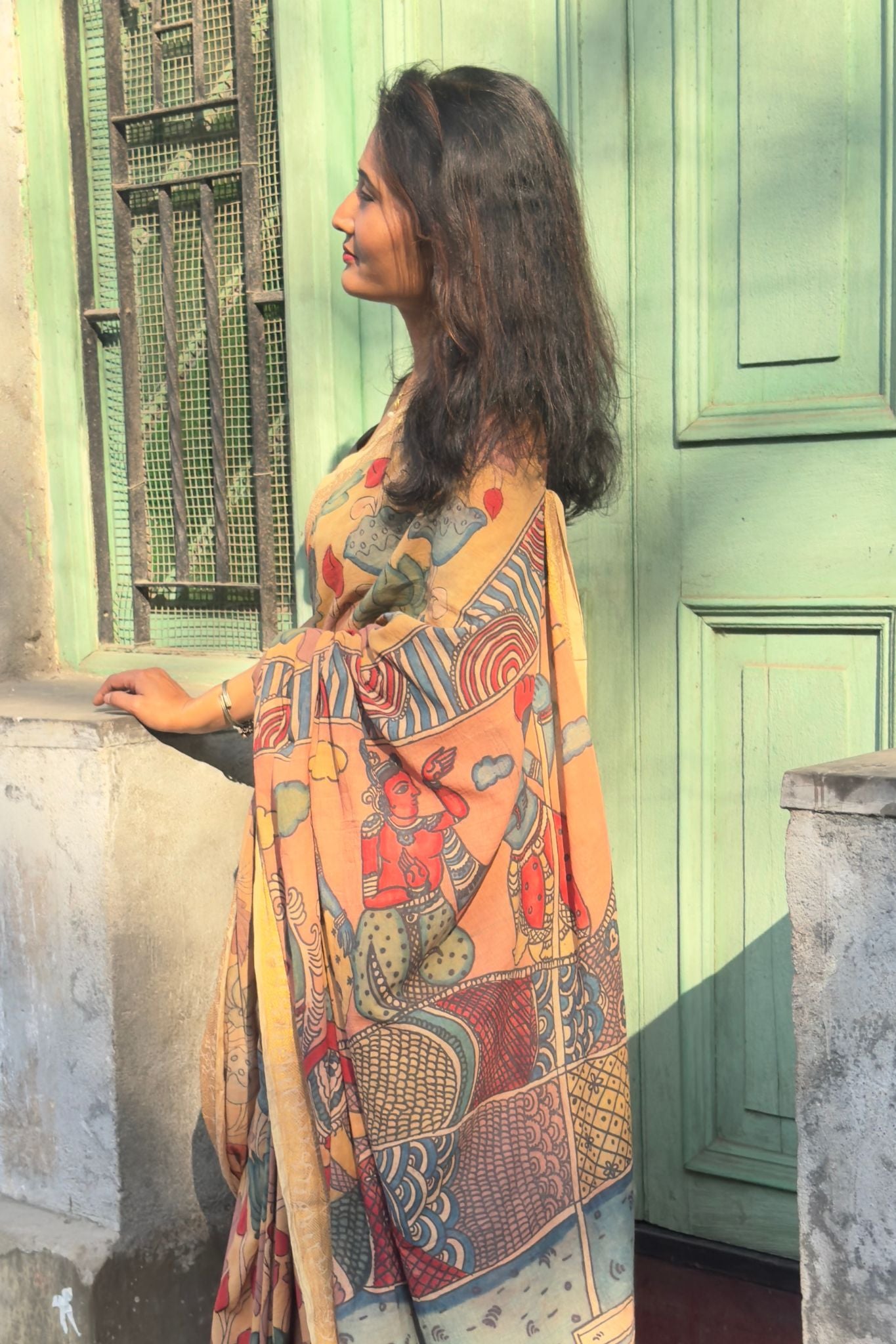 This saree celebrates traditional Kalamkari artistry while offering comfort, elegance, and timeless ethnic charm. Pair it with handcrafted jewellery or minimal accessories for a graceful, polished look.