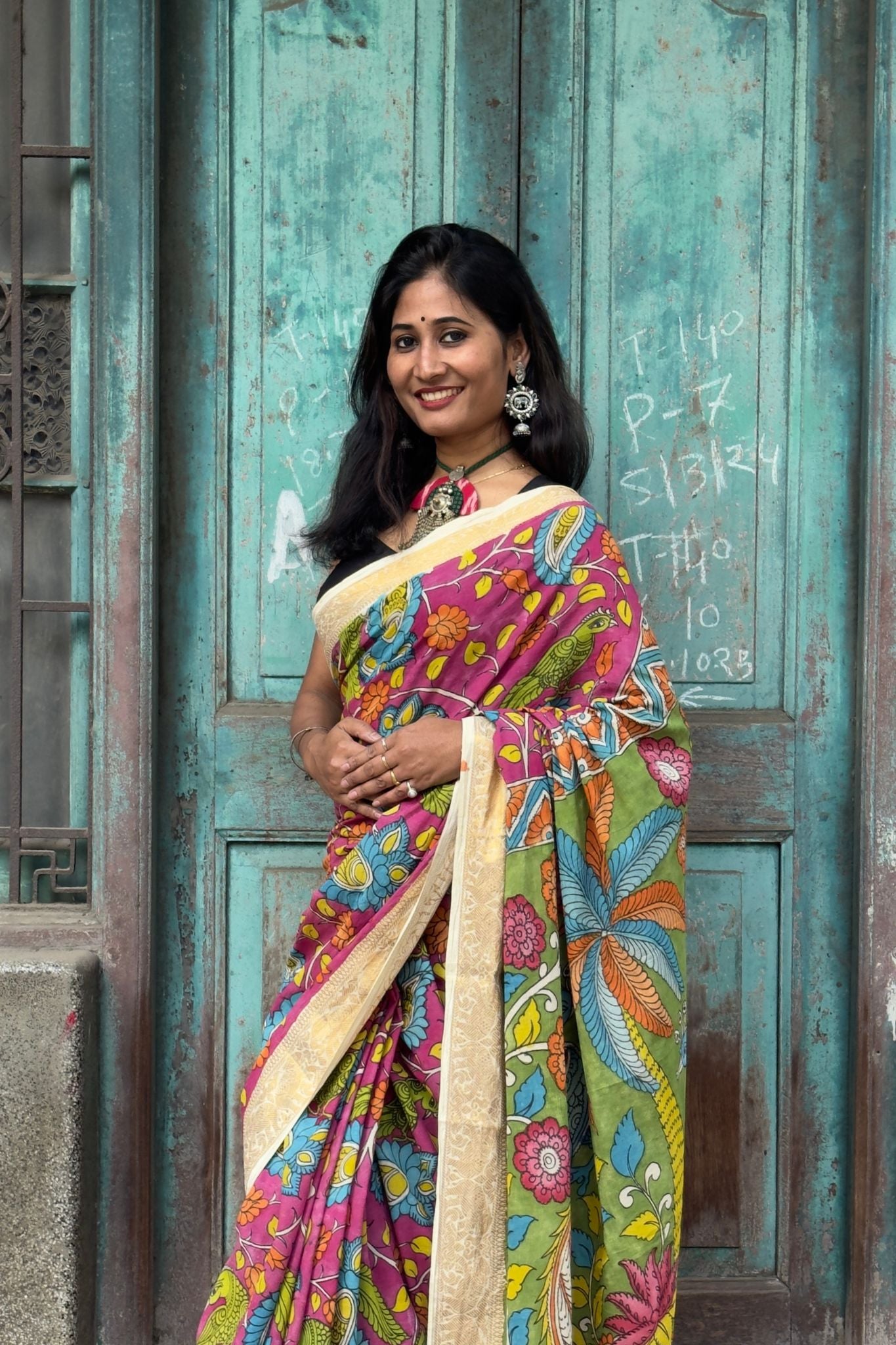 šØ Artistry: Features authentic hand-painted Kalamkari work, highlighting traditional motifs inspired by Indian art and nature.