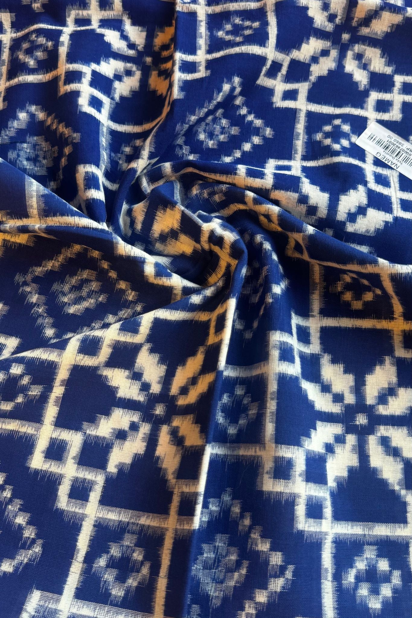Base Color: Blue with geometric Ikkat motifs
