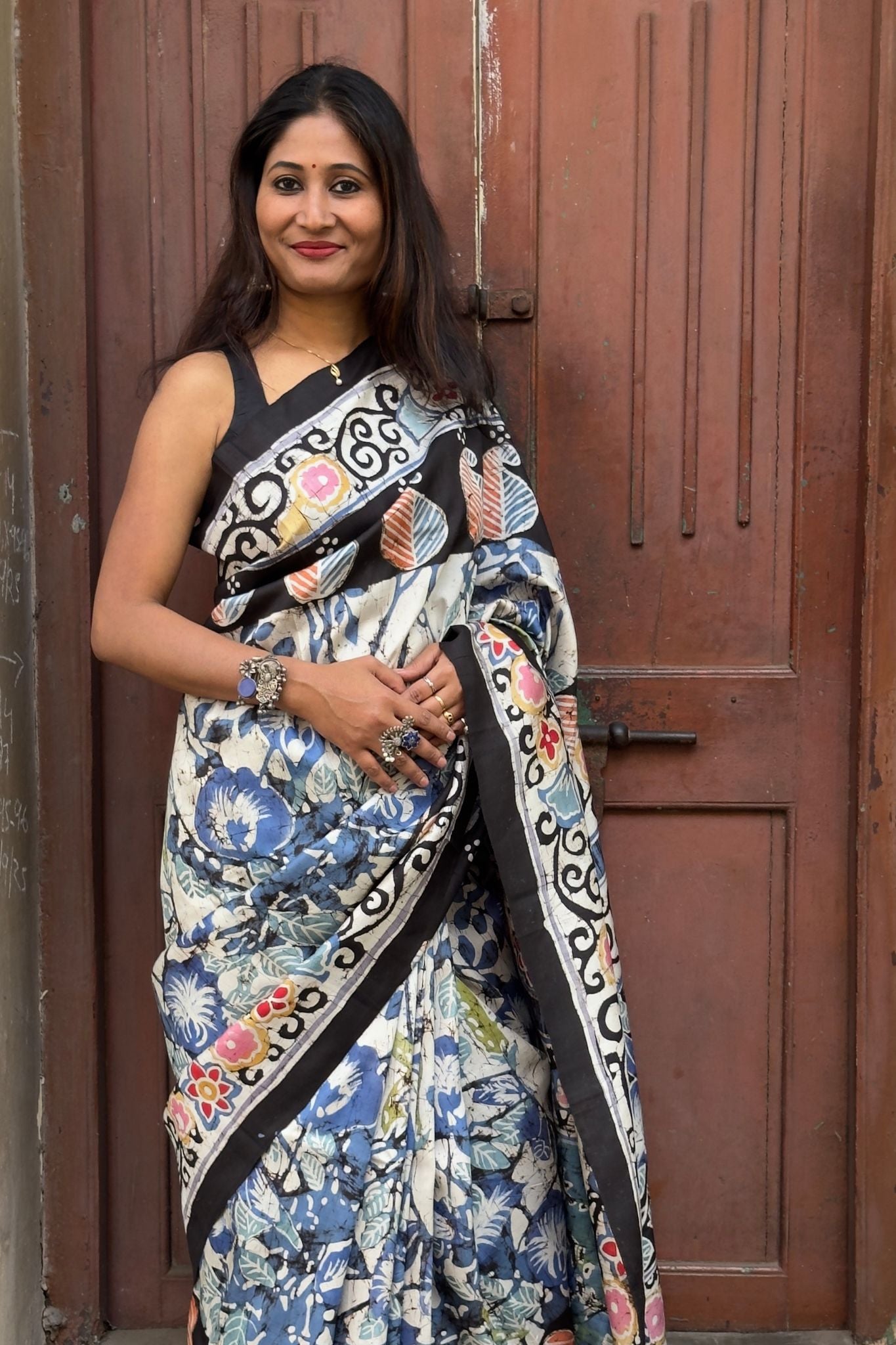 Elevate your ethnic wardrobe with this exquisite Batik Silk Saree crafted from premium mulberry silk, showcasing refined handwoven artistry and vibrant floral detailing. Rich in texture and elegance, this saree beautifully blends traditional craftsmanship with timeless sophistication.